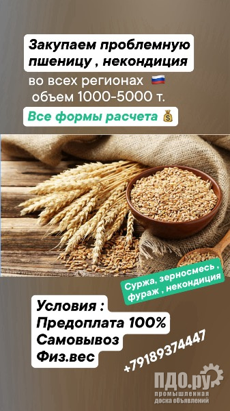Адрес объявления: https://voronezh.z.bizon.ru/Pokupka/Zakupaem-s-mesta-pshenitsu-nekonditsiya_Kuplu_pshenitsa_10033979.html