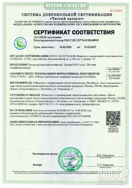 Имеются: протоколы анализа и сертификат соответствия "Халяль продукция".